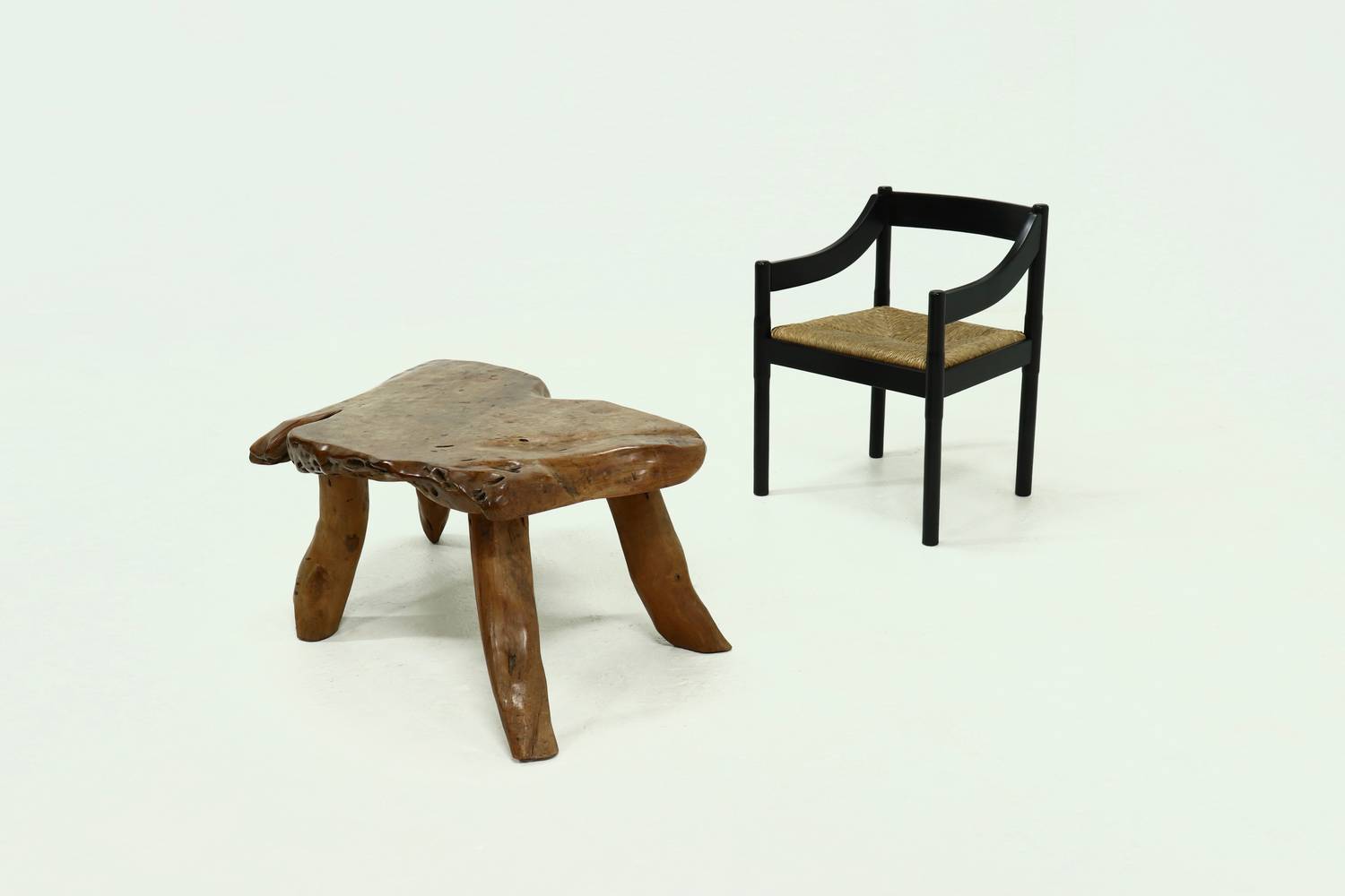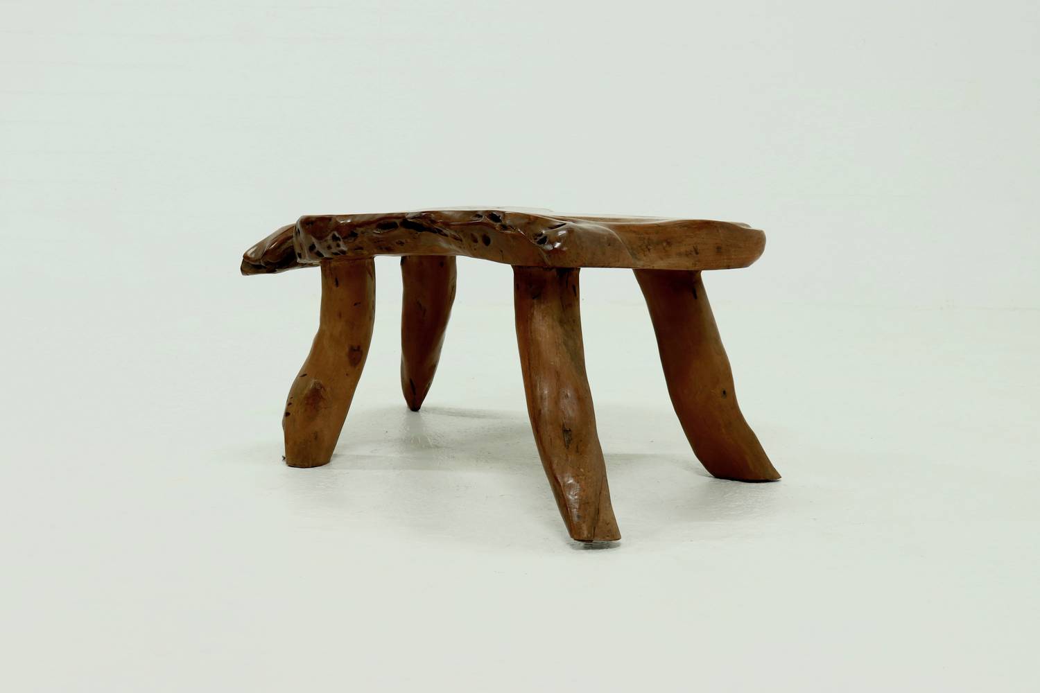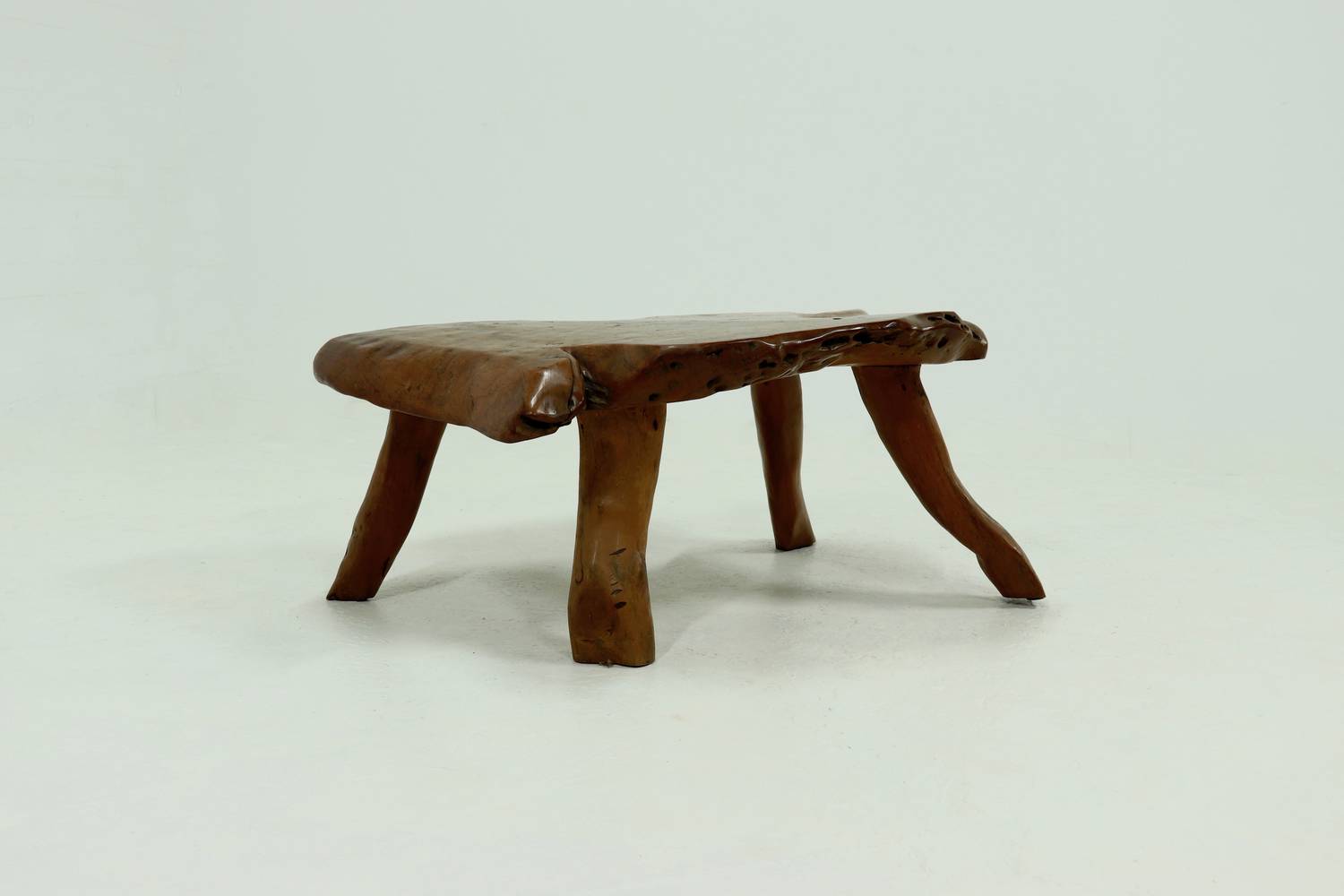 Elevate your space with this extraordinary coffee table from the 1960s. Handcrafted from a single, solid tree trunk. Showcasing the natural curves and organic imperfections of the wood, this piece celebrates the raw beauty of nature in its purest form. Its sculptural silhouette and impressive scale make it not just a piece of furniture, but a conversation piece. Whether placed in a modern loft, rustic retreat, or curated gallery-style interior, this table adds warmth, texture, and undeniable character to any setting. Remains in good condition with some patination and signs of use to the top.