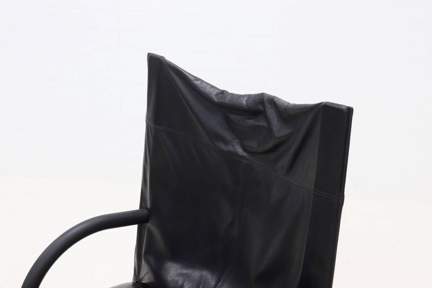 'Zen' lounge chair with ottoman designed by Claude Brisson for Ligne Roset France in the 1980's. The set is upholstered in high quality soft black leather. Remains in very good condition.