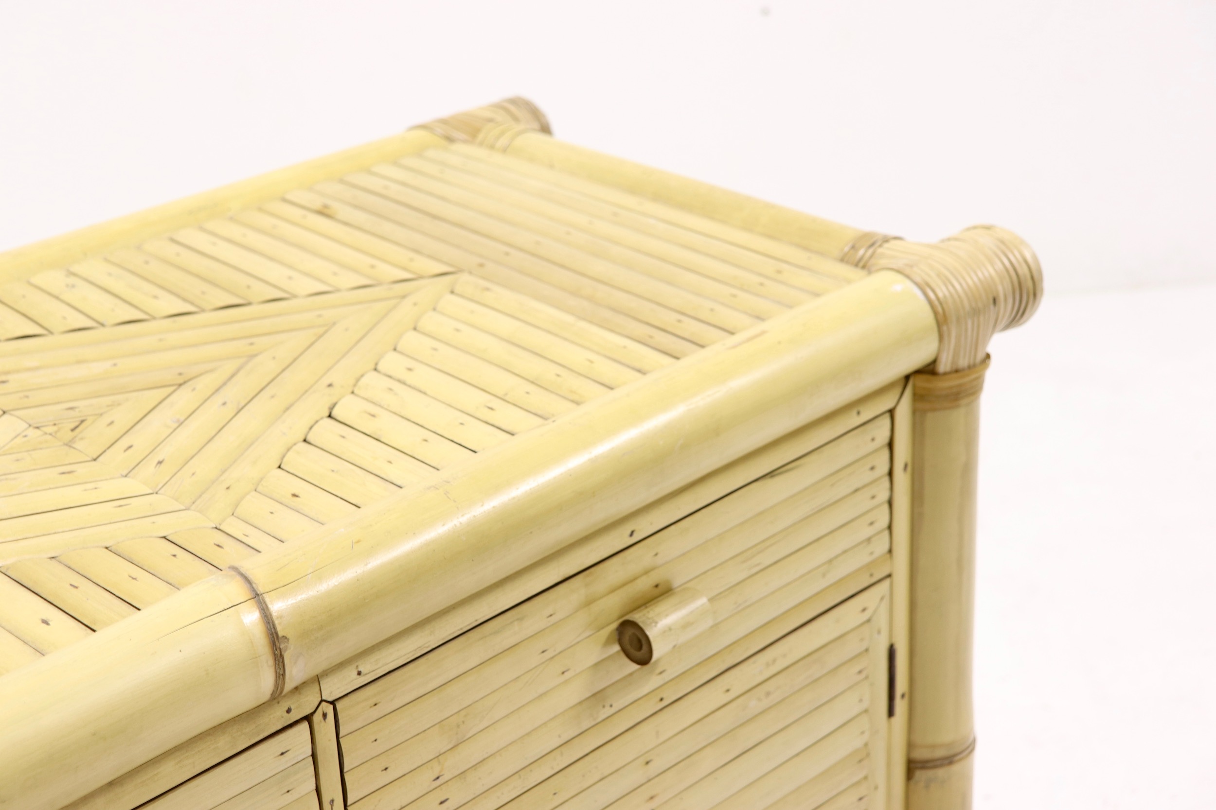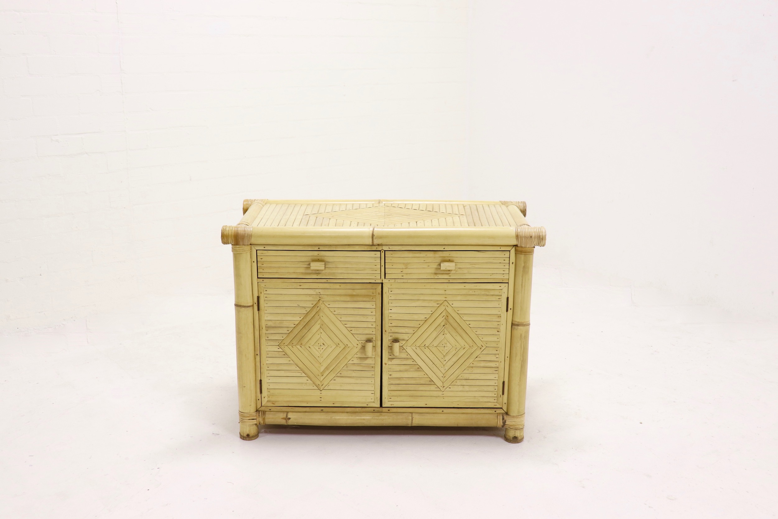 Nice sized rattan and bamboo sideboard from the 1970s. The sideboard features 2 drawers and 2 doors at the bottom. Nice piece which remains in good condition.